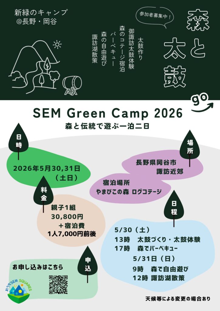 岡谷・諏訪の森と伝統を、SEM的に楽しむキャンプです。